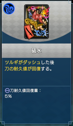 流転の恩寵 | 砥水 | ダッシュで刀の耐久値回復 | ★★★★★ |